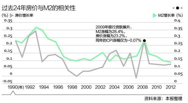 大家全民买房,这么大的需求量,房价当然很难压下来。可以说只要M2是增长的,我们的房价就会长期向上。