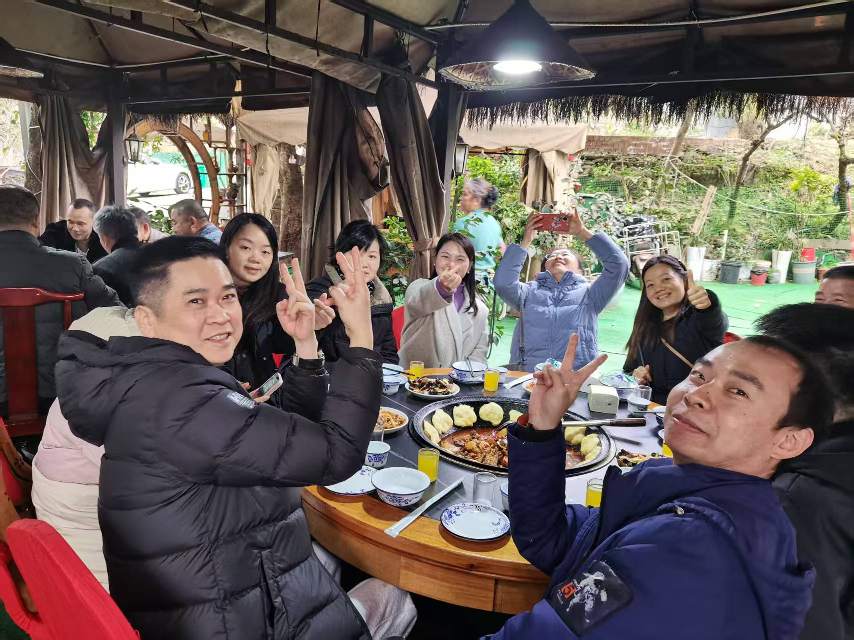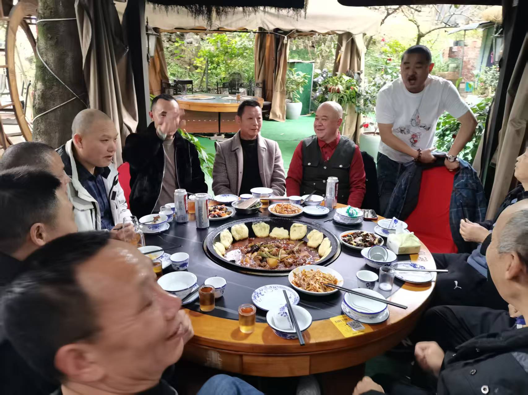 从石经寺出来后,已经临近中午,大家带着满满的祈福之意,前往洛带古镇。到达古镇后,团队成员们首先在一家具有当地特色的餐厅享用了丰盛的午餐。餐桌上摆满了各种地道的客家美食,如伤心凉粉、洛带烟熏鹅、玉米馍馍等,大家一边品尝着美食,一边交流着上午在石经寺的感受,欢声笑语回荡在餐厅里。